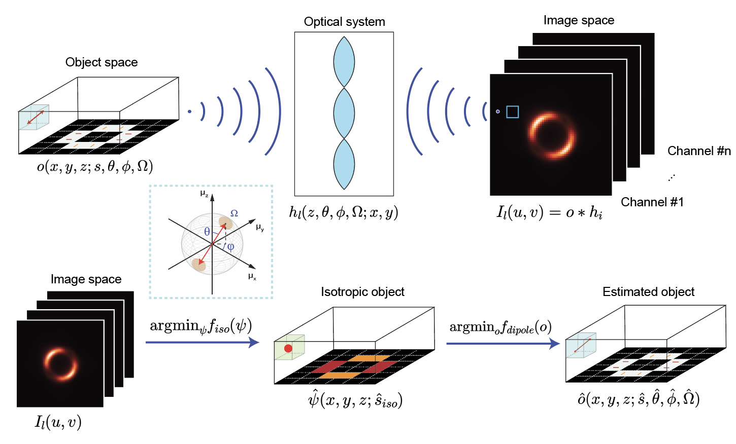 I developed a computationally efficient signal processing method to reconstruct the 6D infomation - 3D localization $\langle x,y,z\rangle$ and 3D orientation $\langle \theta,\phi,\Omega \rangle$ - of biological samples through fluorescence microscope.